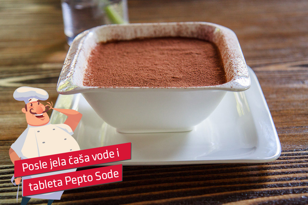 Piškote natapati u miks od kafe, vode i amaretto likera. Ređati u posudu piškote pa red krema. Tako dva puta i na kraju posuti kakaom.